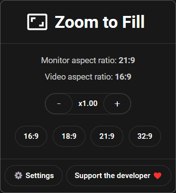 With more than +100.000 users and counting, this extension offers intuitive user experience to handle video aspect ratio on major streaming platforms like: